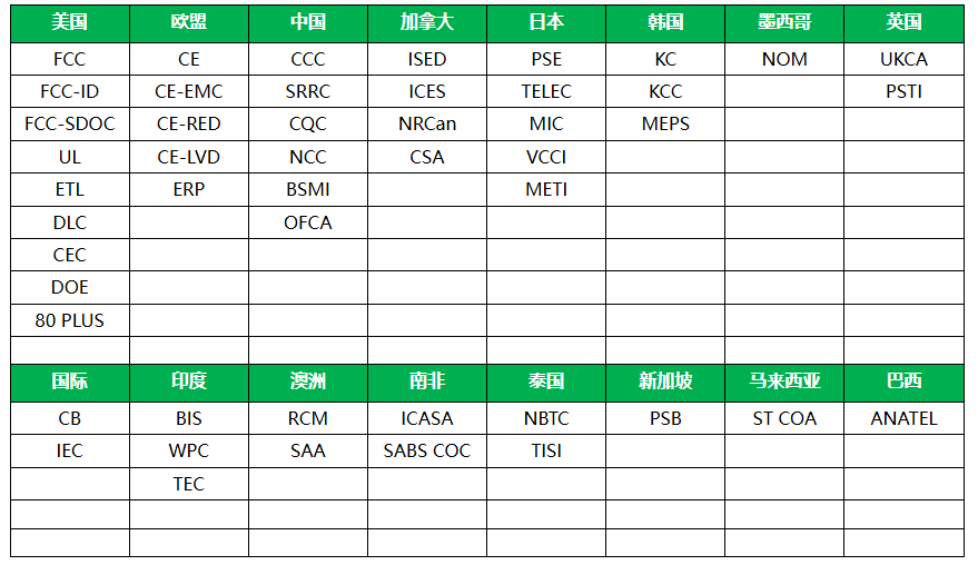 一、AR眼镜产品全球认证检测服务(列举部分):